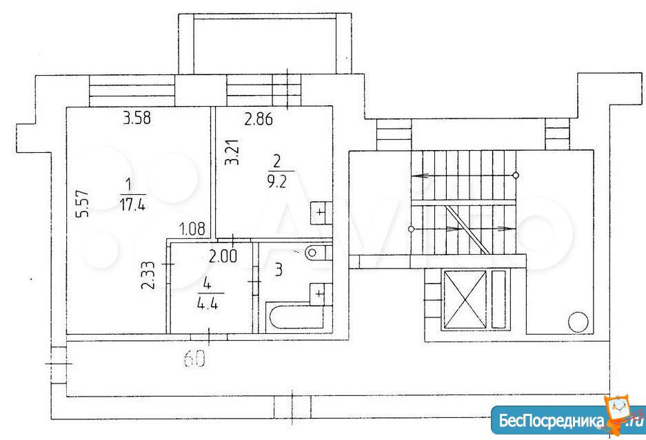 Очень толстые стены. Лифт пассажирский.
