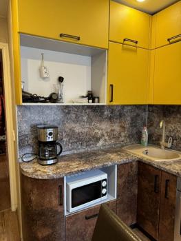 санузел - совмещённый, мебель - кухня, хранение одежды, спальные места, холодильник, плита, микроволновка, стиральная машина.