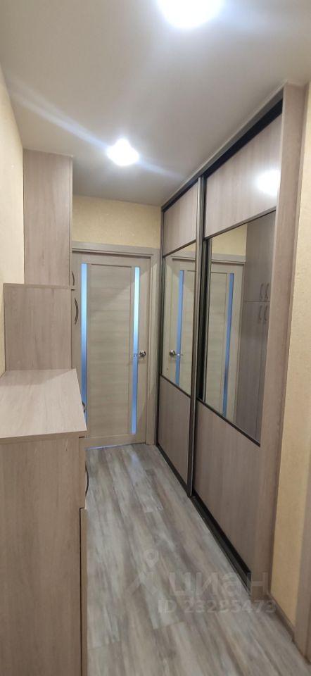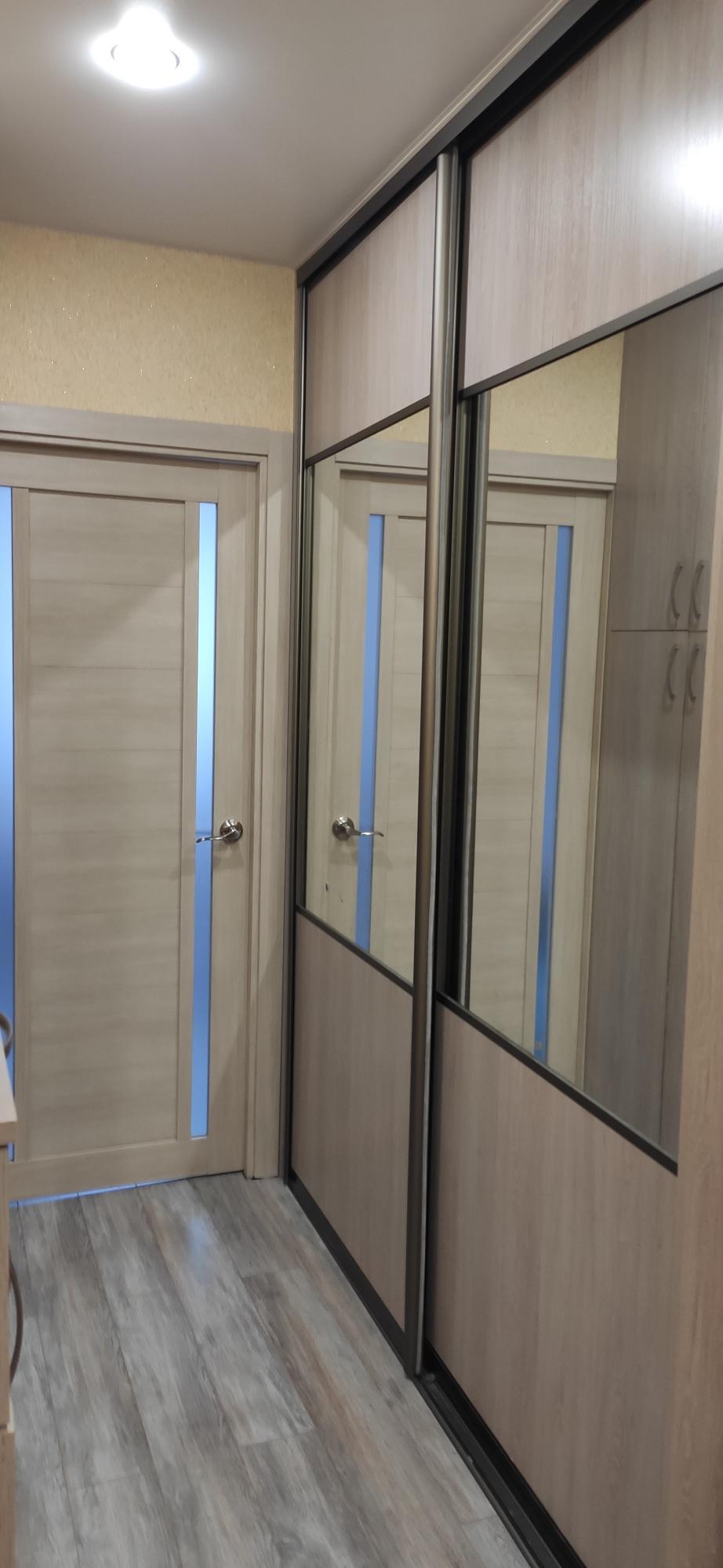 В коридоре большой встроенный шкаф с зеркалом