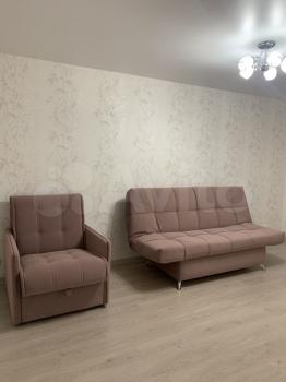 Кресло и комфортный для сна диван. Подведены все необходимые розетки. Выход на чистую лоджию.