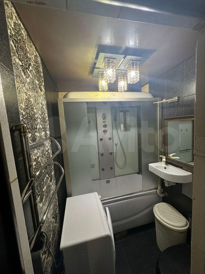 Санузел совмещённый, оборудован ванной и стиральной машиной. В прихожей предусмотрены удобные полки для хранения вещей.