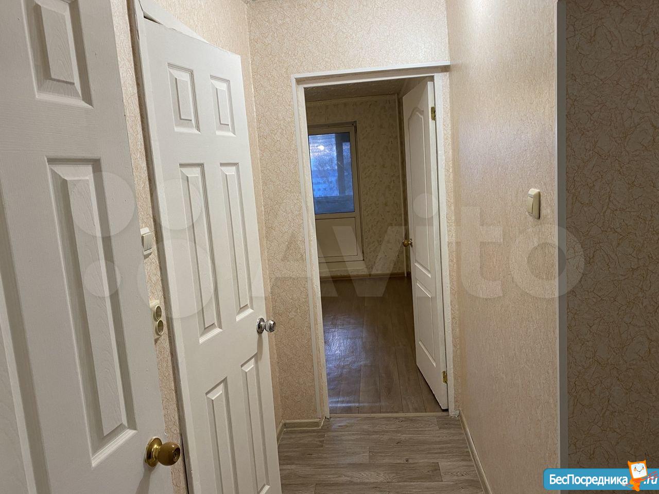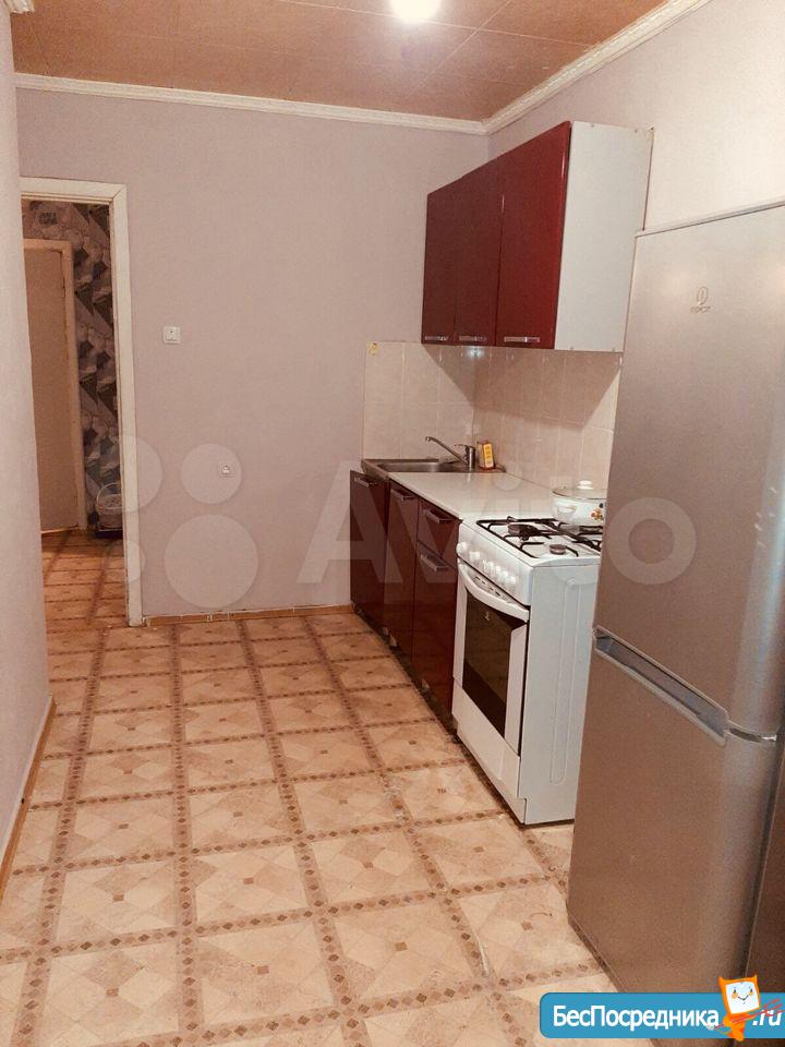 Квартира после небольшого косметического ремонта. Есть кухонный гарнитур, холодильник, стиральная машина.