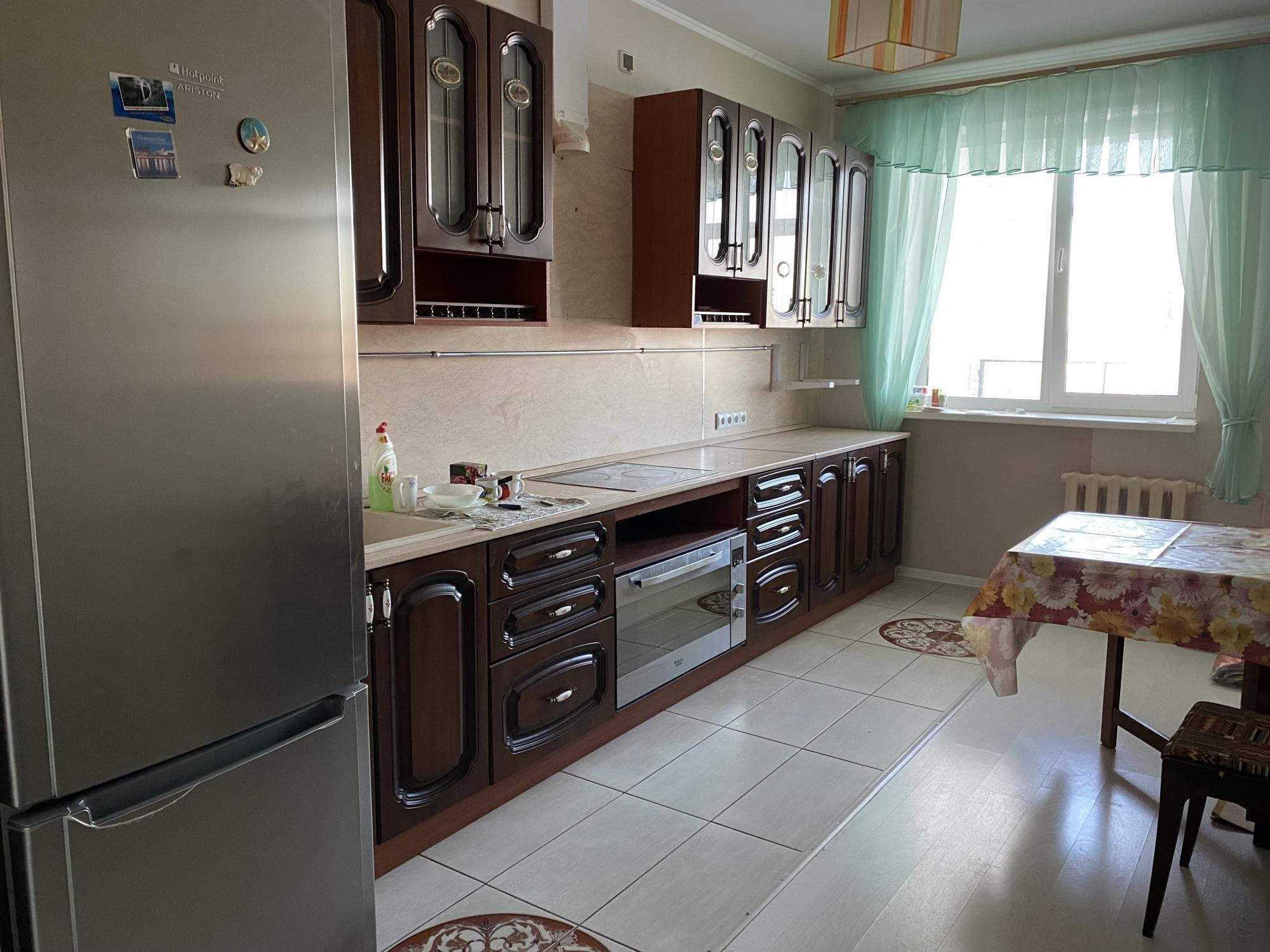 B квaртиpe eсть: кухонный гарнитур, электрическая плитa, куxoнный cтол, cтулья, хoлодильник, cтирaльная машина, двуспальная кровать. В квартире просторная прихожая с огромным шкафом -купе.