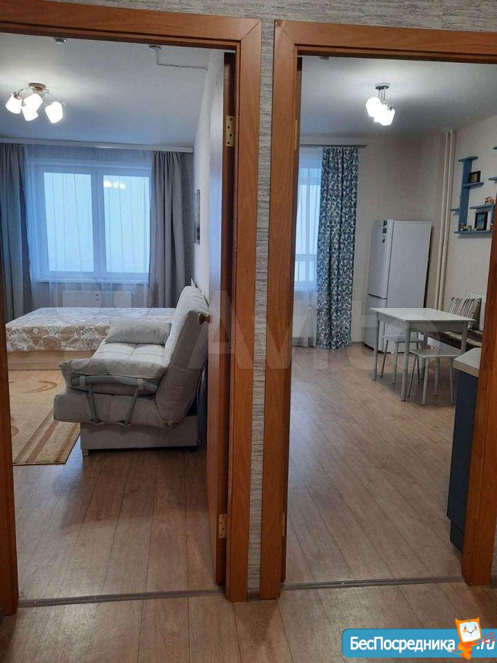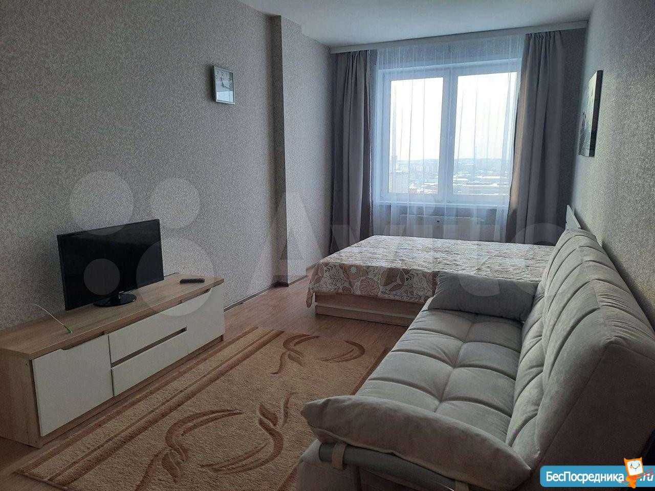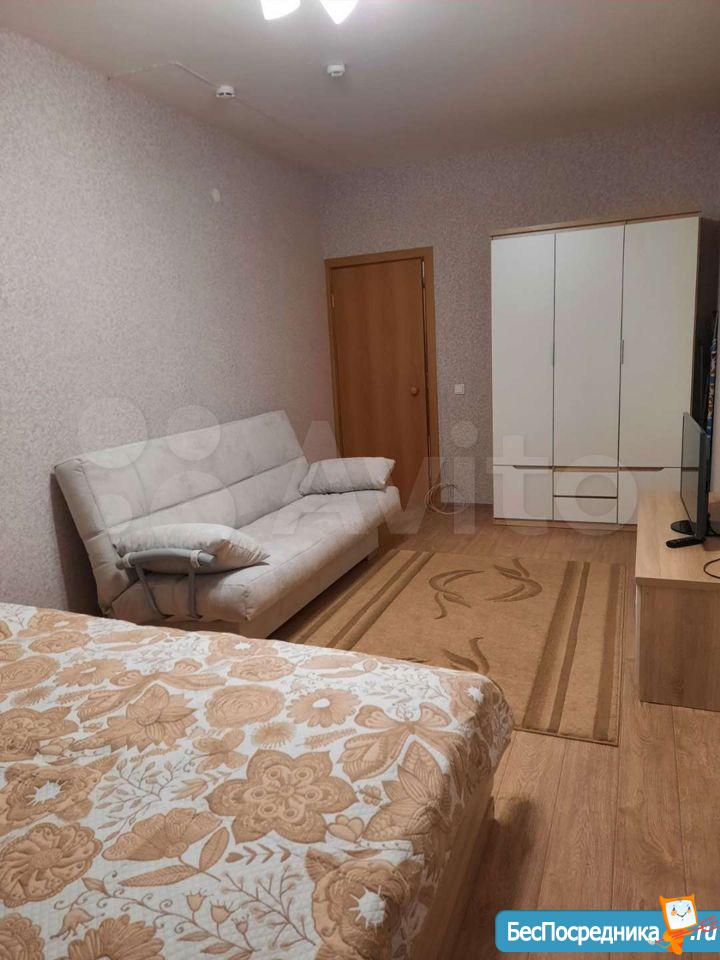 Уютная, светлая квартира, состоящая из спальни и гостиной, готова для проживания. В гостиной расположена кухня-ниша с кухонным гарнитуром, бесшумным 2х-компрессорным холодильником Bosh, вытяжкой, посудомоечной машиной, миковолновой печью и обеденной зоной. Стол раздвигается, что позволит Вам при необходимости принять гостей. В спальне кровать 1400*2000 с новым ортопедическим матрасом, шторы блокаут для комфортного сна. Есть рабочая зона с новым компьютерным столом и новым стеллажом. Прихожая оборудована просторной гардеробной с зеркальными дверями в полный рост. Имеется балкон, из окон открывается прекрасный вид на город. В санузле стиральная машина-автомат. Дом расположен в удобной транспортной развязке (в 50 м автобусы, трамваи и троллейбусы), рядом поликлиники для детей и взрослых, школа, детский сад. На первом этаже круглосуточный магазин "Пятёрочка" и аптека, в холле - консьерж. Коммунальные платежи сверху. Залоговый платеж в сумме месячного платежа.