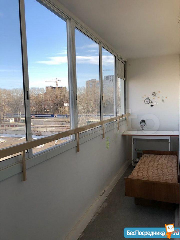 Застекленная лоджия по длине на всю квартиру.