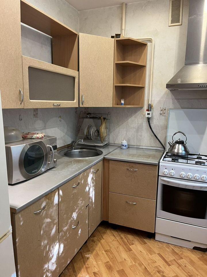 Кухня площадью 6 м² оборудована необходимой техникой: плитой, холодильником и микроволновой печью. В комнате установлен вместительный шкаф для хранения вещей. В прихожей есть удобная вешалка для одежды.