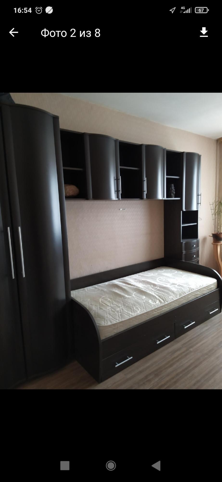 В кваpтирe eсть вся необходимая мебель: раскладной диван, стол, стенка, кресло, шкаф-купе,кухонный гарнитур.