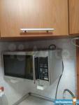 мебель - кухня, хранение одежды, спальные места, холодильник, плита, микроволновка, стиральная машина, телевизор.