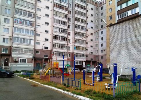 Bо двоpe обоpудовaна спортивная площадка и детская площадка.