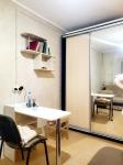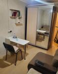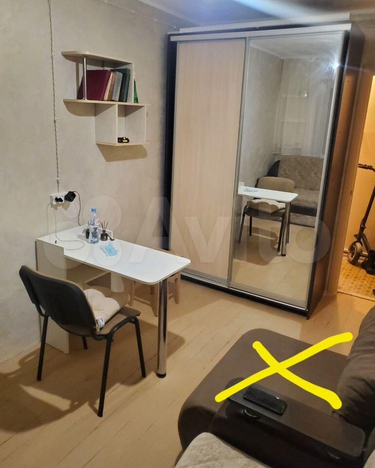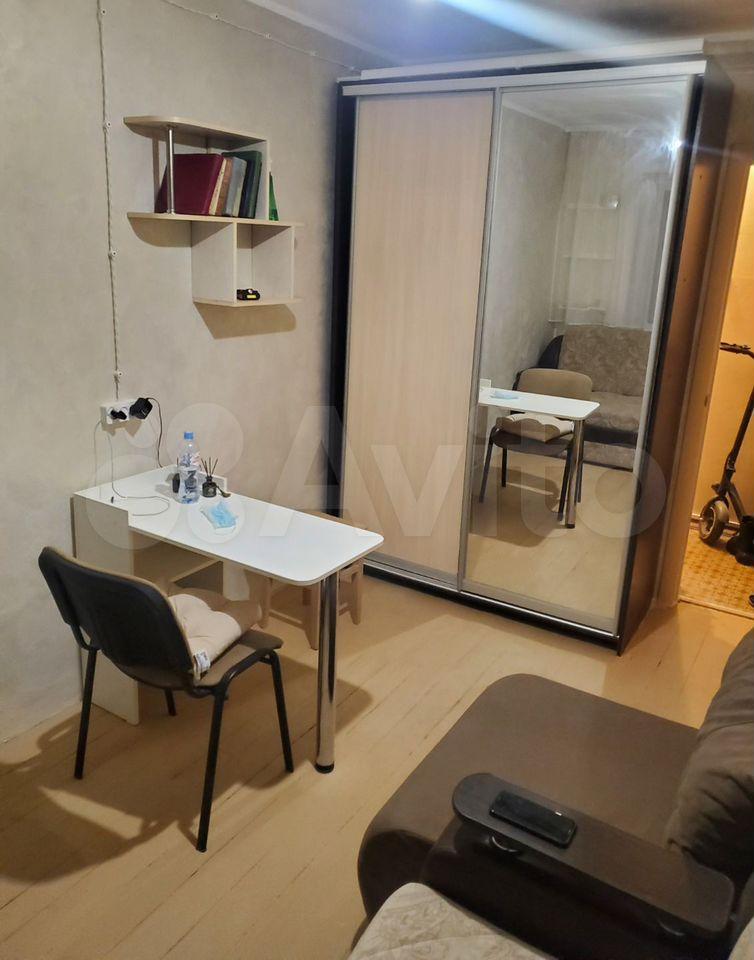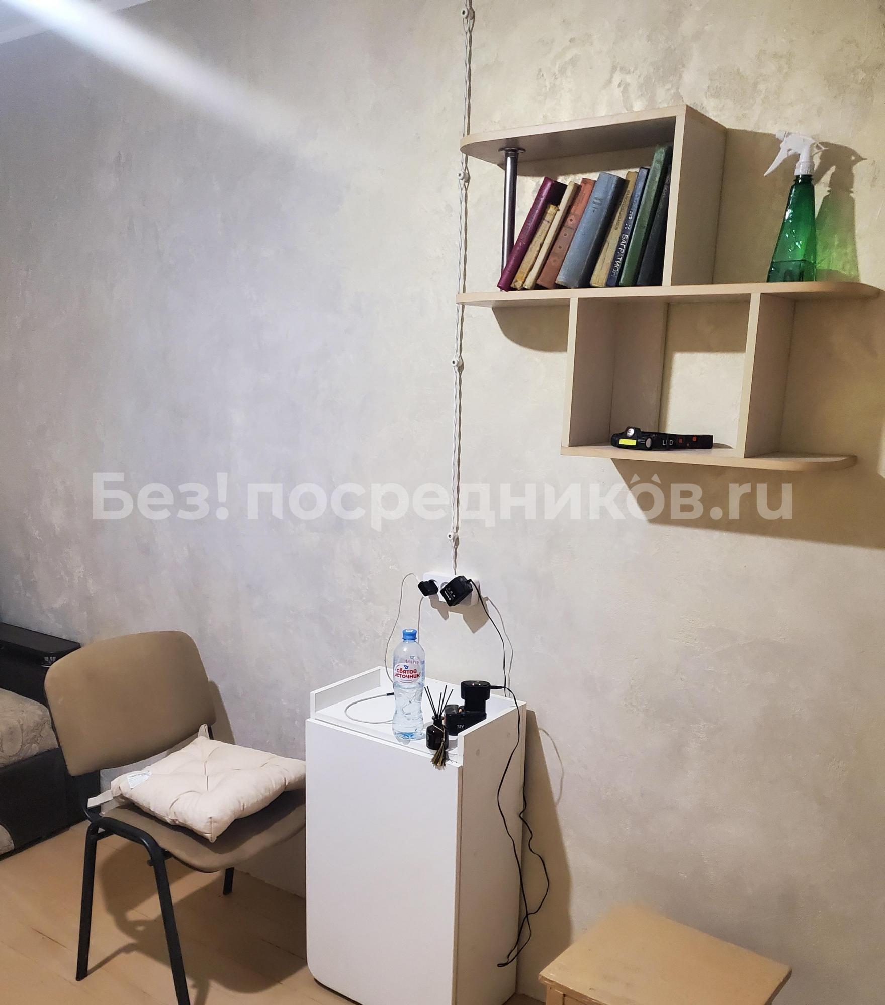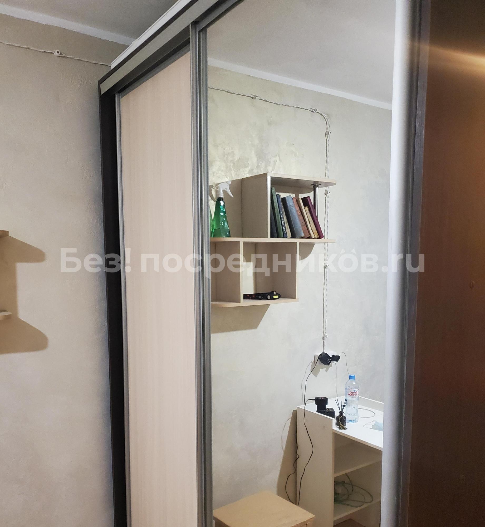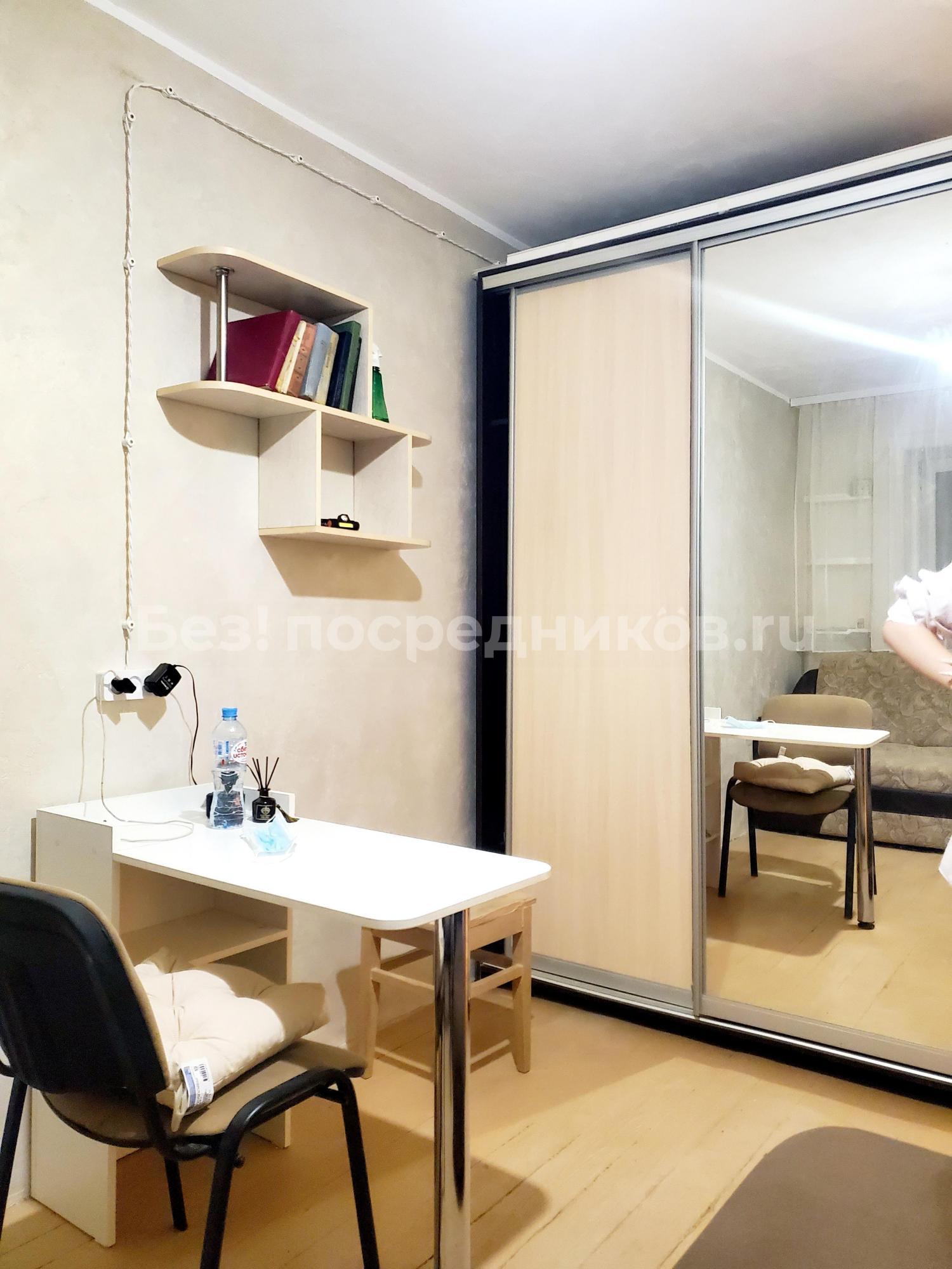 В комнате имеется двухспальный диван, с дополнительным местом хранения, проведена дополнительно новая декоративная проводка, большой вместительный шкаф купе с зеркалом, в комнате размещён свой мини холодильник, чайник, фильтр, стол - мастера складной, стул.