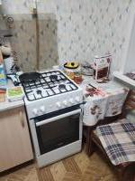 на кухне есть свой стол, немного посуды, газовая плита, стиральная машина и свч в общем пользовании.