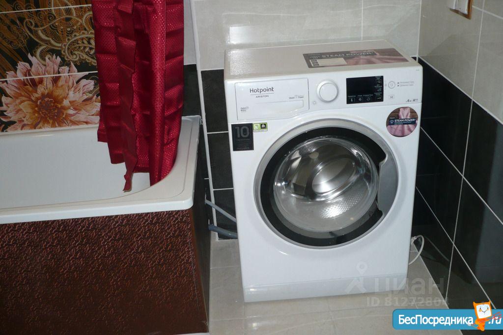 Ванна - кафельная плитка в зоне ванны, стиральная машина.