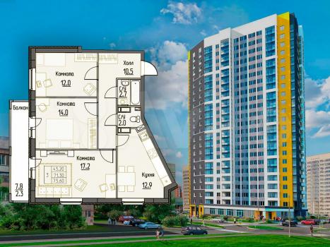 Просторная 3-я квартира в новом жилом комплексе Зенит, без мебели.