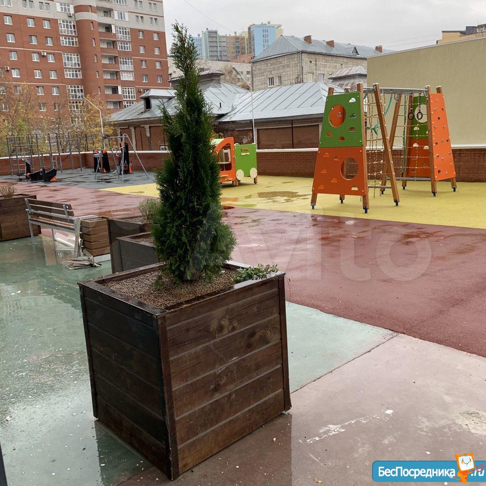 Закрытый двор с современной детской площадкой и зоной с тренажерами, консьерж, видеонаблюдение. В доме на уровне первого этажа подземный паркинг (есть возможность арендовать). Также у дома и через дорогу есть платные стоянки.