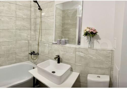 • Светлый санузел с итальянской плиткой и качественной сантехникой