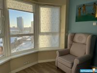 Светлая, солнечная квартира расположена на 14-м этаже 25-этажного дома. Все комнаты с панорамным остеклением и шикарным видом на центр города. Каждая комната изолирована. Из большой кухни-столовой выход на лоджию. В ванной комнате кабина с турецкой парной. Имеется отдельная гардеробная комната, оборудованная системой хранения одежды.