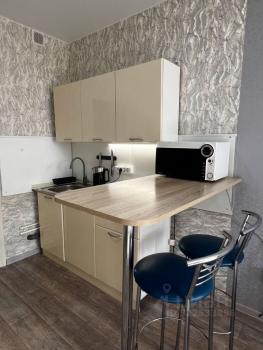 Сдается 1-комн. квартира, в новом доме. В квартире светло и уютно, панорамный вид из окон. Квартира укомплектована мебелью и бытовой техникой, имеется: диван, шкаф, кухонный гарнитур, холодильник, стиральная машина, микроволновка, утюг, гладильная доска. В шаговой доступности круглосуточный супермаркет, аптеки. Рядом автостоянка. Остановка находится в 4-5 минутах от дома.
