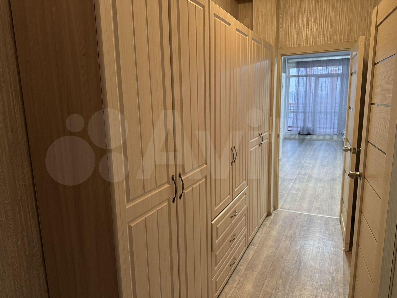 Гардеробные шкафы, кухонный гарнитур, рабочий стол, холодильник, индукционная плита, микроволновая печь, чайник, посуда, большой 4к smart tv телевизор, ортопедический диван с возможностью складывания.