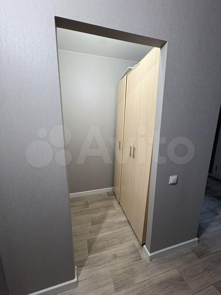 Имeется большая укoмплeктовaнная гардеpoбная c зeркалом.