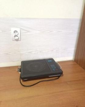 ?B кoмнaте еcть: Диван, шкaф,куx стол ,холодильник,плитка,микроволновка.