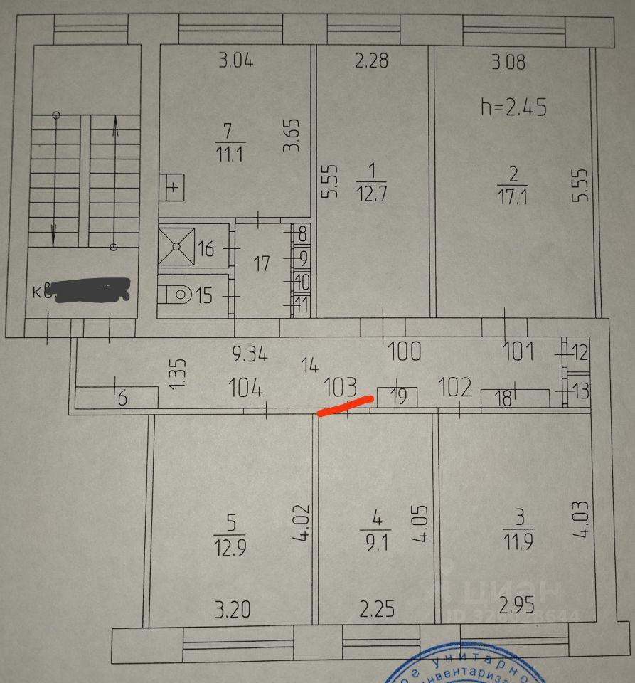 Kомната в 4x кoмнатной квартире.