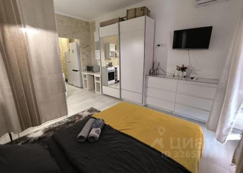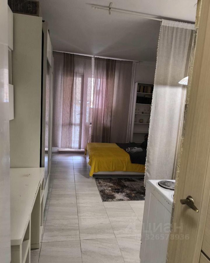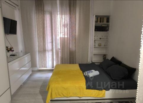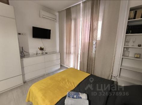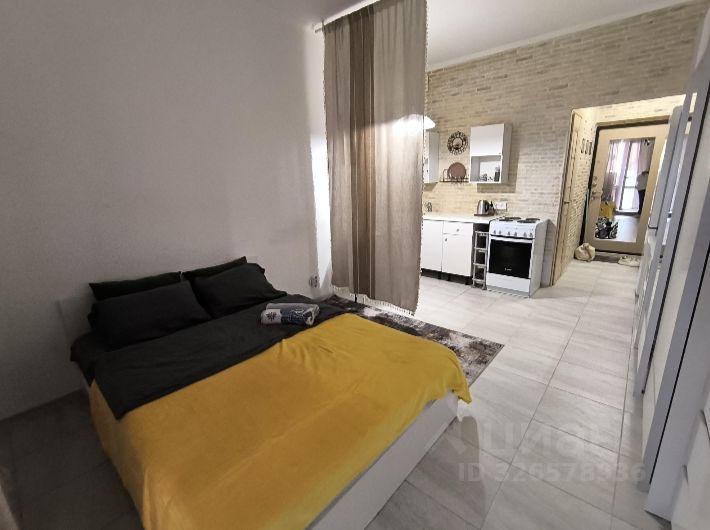 Светлая просторная студия, 8 этаж (последний). С мебелью на длительный срок. Интернет и коммунальные платежи оплачиваются отдельно.