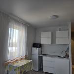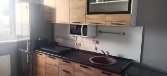 Есть новая стиральная машина, новый холодильник и микроволновка, новый кухонный гарнитур и диван.