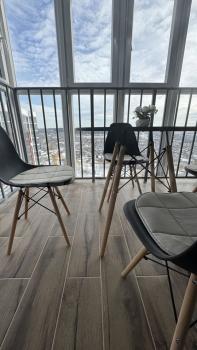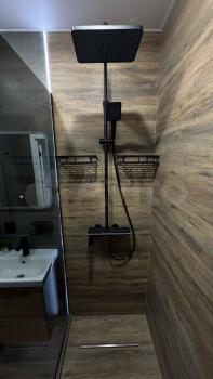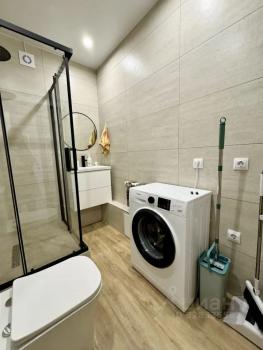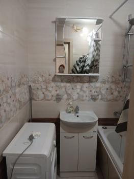 Санузел совмещенный, оснащен душевой кабиной и стиральной машиной. Лоджия застеклена, с видом на город. Парковка за шлагбаумом во дворе.