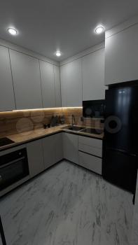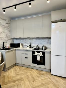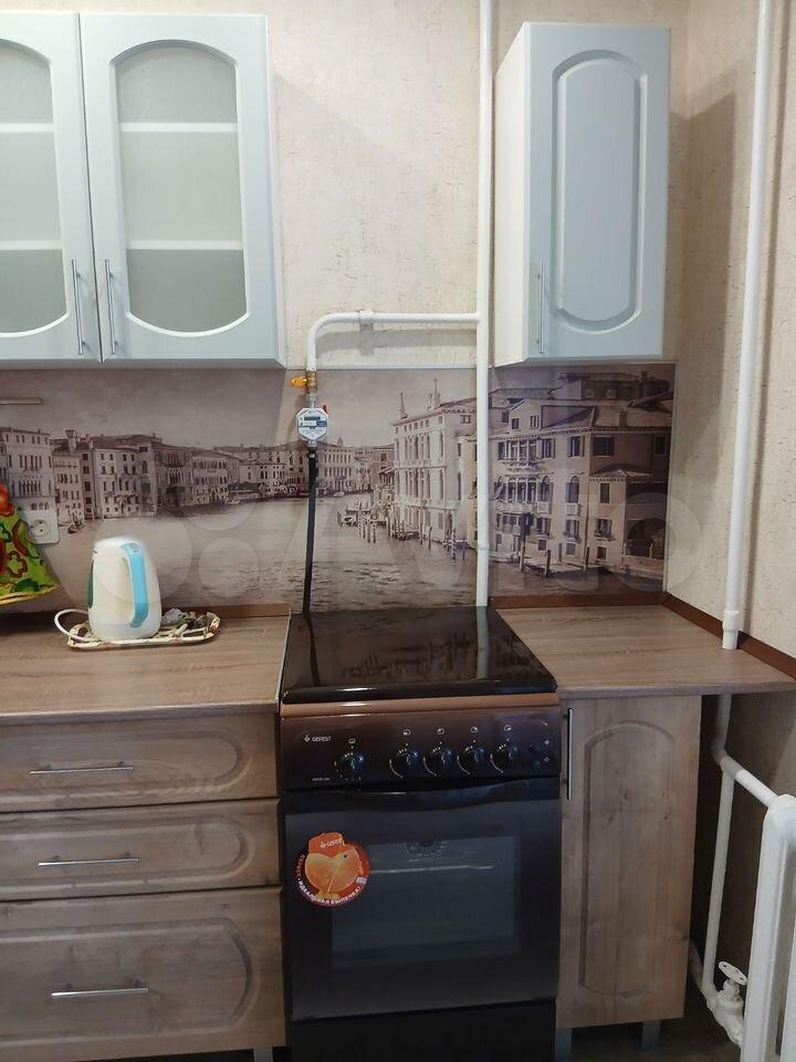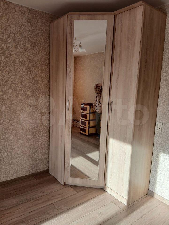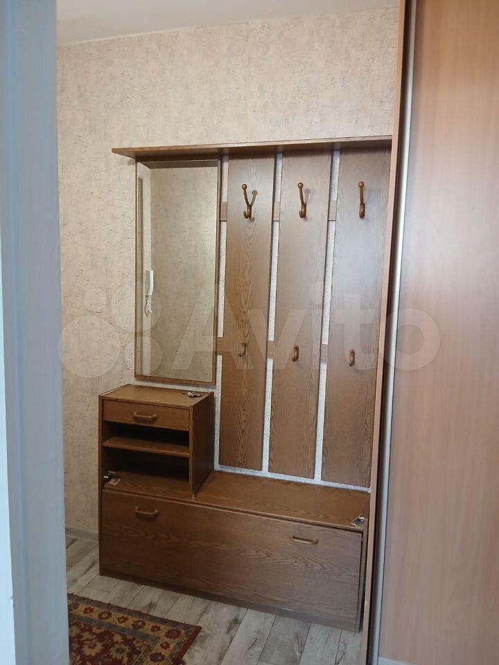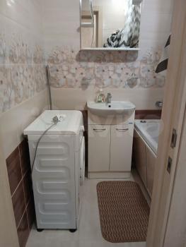 В квартире сделан свежий косметический ремонт. На кухне гарнитур, обеденный стол, табуретки. В комнате - шкаф-купе и журнальный столик, в прихожей кладовочка и вешалка для одежды. В санузле шкафчик с зеркалом и раковина на тумбе.