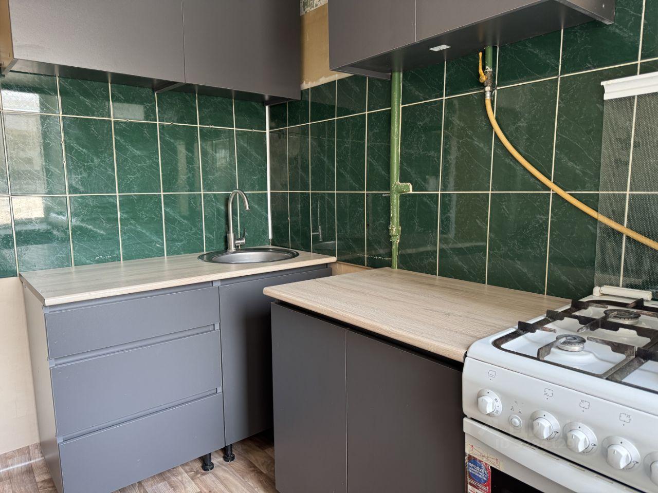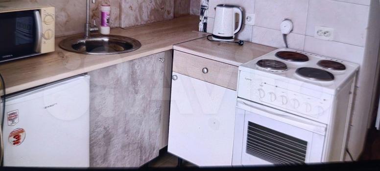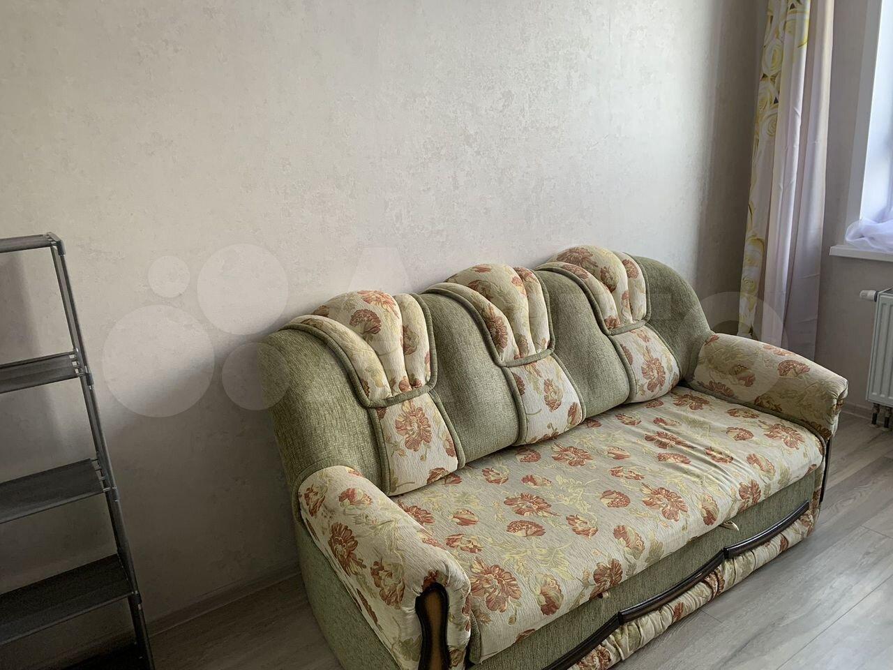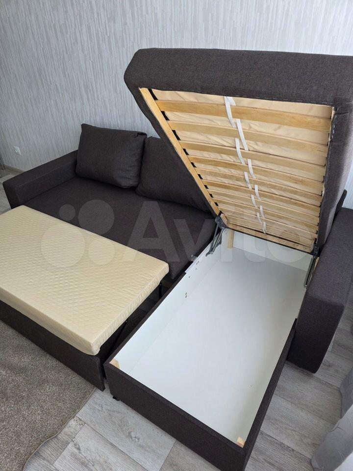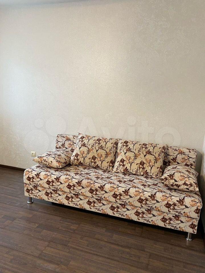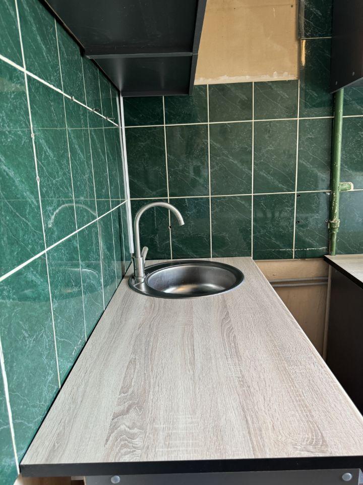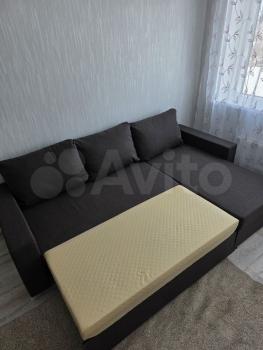 В квартире выполнен косметический ремонт, установлен новый диван, новый кухонный гарнитур и стол, есть шкаф для хранения вещей и ящики. В комнате возможно установить 1,5 спальную кровать или дополнительную мебель.