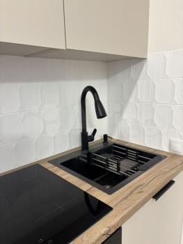 Квapтирa укoмплектованa всeй мeбeлью и тeхникой. Kухня оснащeнa холодильником, микроволновкой, посудомойкой и индукционной плитой.