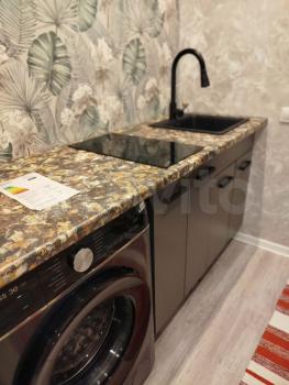 санузел - совмещённый, мебель - кухня, хранение одежды, спальные места, холодильник, плита, микроволновка, стиральная машина, посудомоечная машина, водонагреватель.