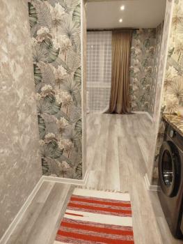 В квартире выполнен косметический ремонт. Просторная кухня оборудована необходимой бытовой техникой, включая плиту. В комнате установлен вместительный шкаф-купе. Санузел совмещённый, оформлен в светлых тонах.