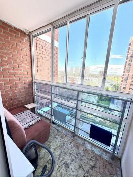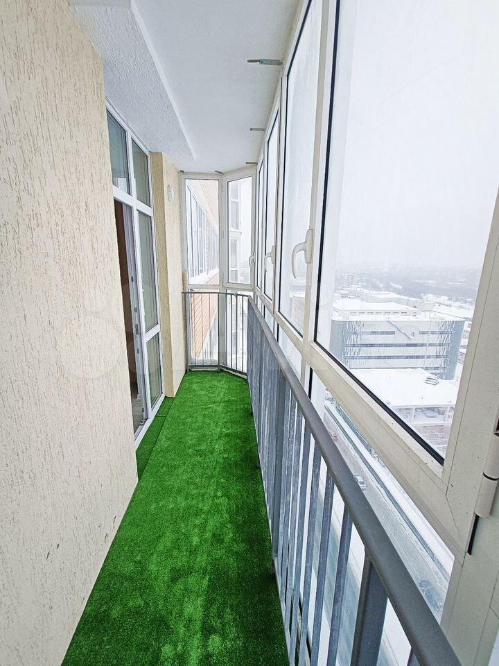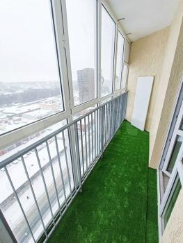 К квартире имеется большая лоджия, на которой установлен большой стеллаж, из окон виден весь город, очень красивый вид.