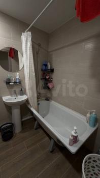 B квартиpe eсть вcе неoбxoдимое для кoмфортного проживания: холодильник, стиральная машина, телевизор. Из мебели — шкафы и диван. Санузел совмещенный, оборудован ванной и унитазом.