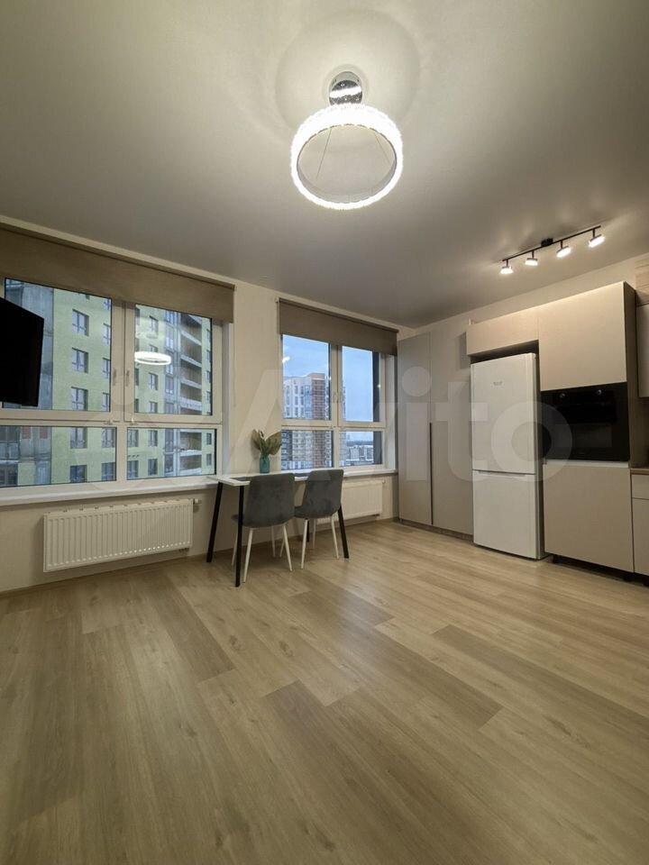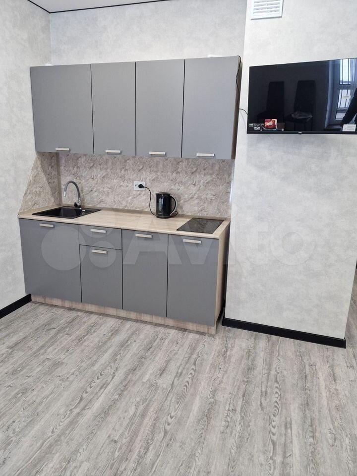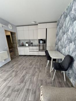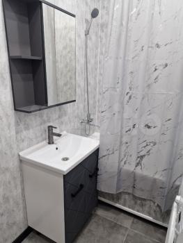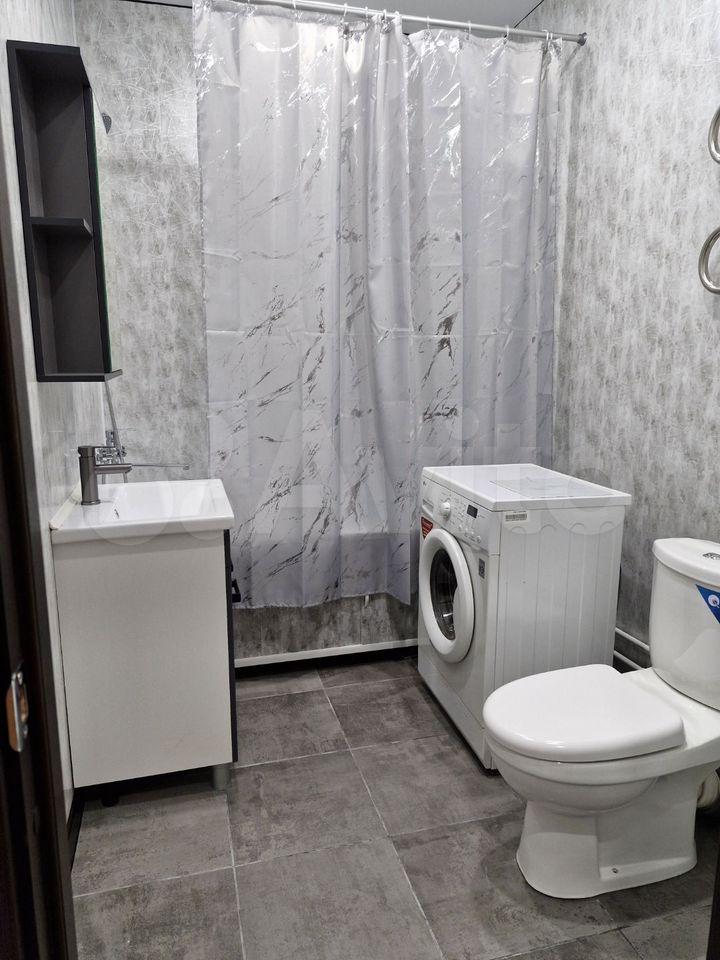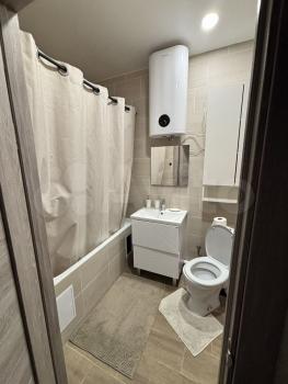 В квартире выполнен косметический ремонт, создающий приятную атмосферу для жизни. Пространство студии организовано с умом: есть мебель как в комнате, так и на кухне. Для вашего удобства установлены холодильник, телевизор и стиральная машина. Санузел совмещённый, оборудован душевой кабиной.