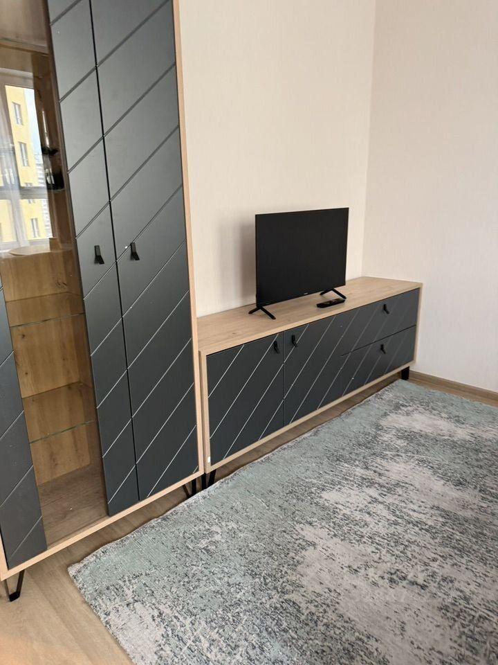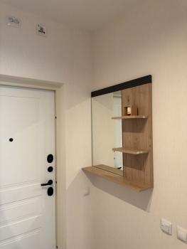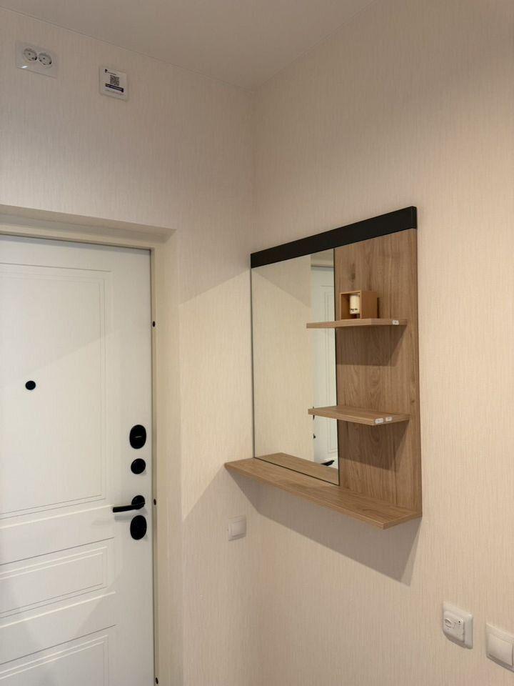 Квартира оборудована необходимой техникой: стиральная машина, холодильник, варочная панель, и посудомойка. На кухне диван Hoff в сканди стиле и полубарные стулья. В гостиной стеллажи в потолок, диван и комод IKEA. В прихожей шкаф для хранения с зеркалами в потолок. Кондиционеры на кухне и в комнате.
