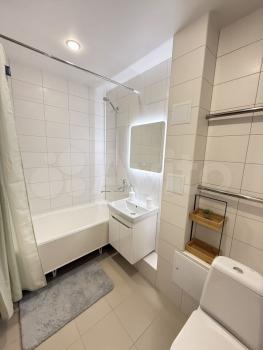 В ванной комнате есть стиральная машина и продуманные места хранения, зеркало с подсветкой, установлен водонагреватель. В коридоре также вместительный шкаф и удобная полочка с крючками для самого необходимого.
