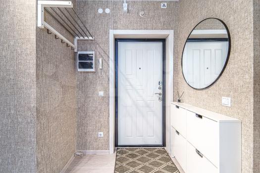 5. В прихожей огромное зеркало и система хранения, предусматривающая целый шкаф для обуви и шкаф для хранения бытовых мелочей.