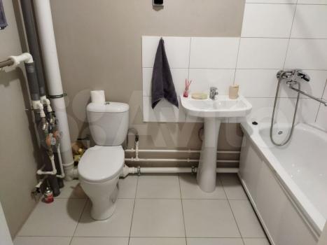 Ванная комната совмещенная, оборудована ванной и стиральной машиной, новой сантехникой !
