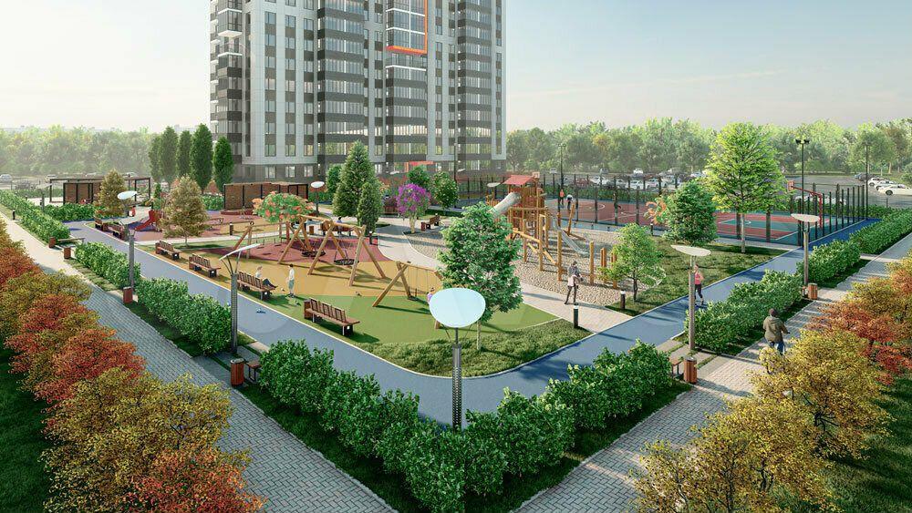 Во дворе шикарная современная детская и подростковая площадка.