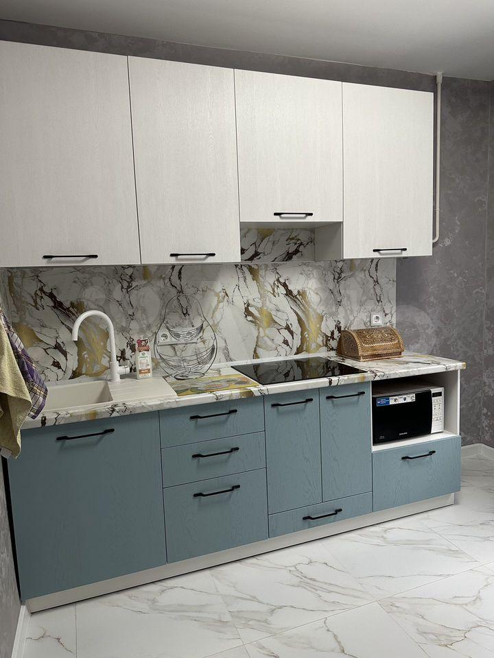 Вся мебель и техника новые. Из техники: микроволновая печь, духовой шкаф, индукционная плита, холодильник, стиральная машина, чайник.