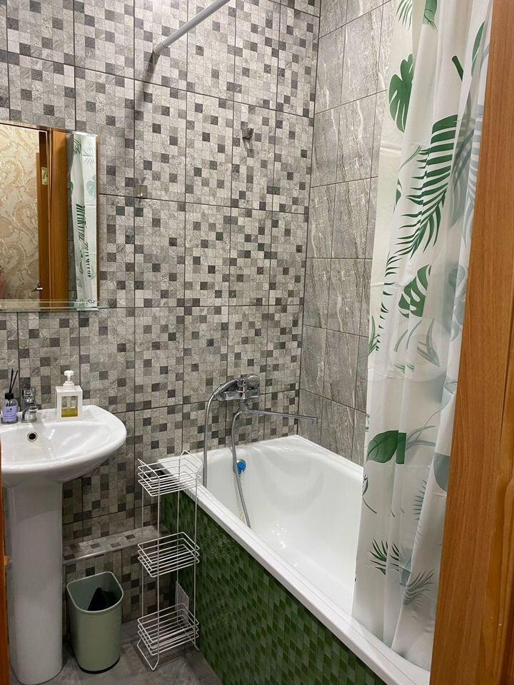 Кухня оснащена необходимой техникой. Ванная комната совмещенная, с стиральной машиной.