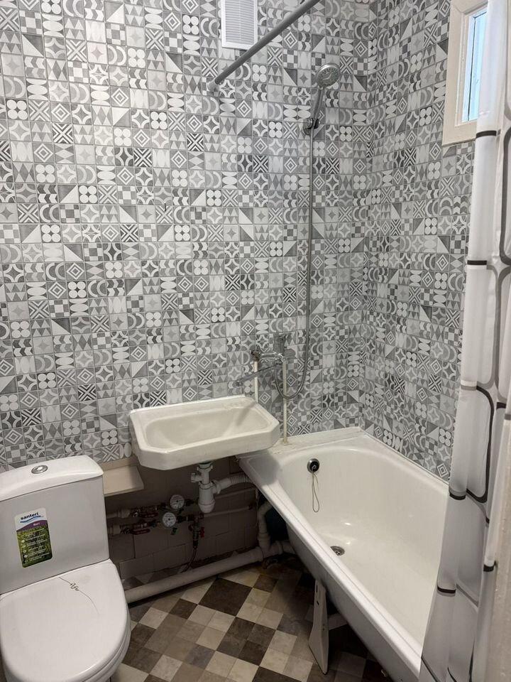 Ванная комната совмещенная, оснащена современной сантехникой и ванной. Из окон открывается вид на тихий двор, где расположена детская площадка. Для вашего удобства предусмотрена открытая парковка во дворе. Много магазинов, детских садов и школ. Соседи тихие.