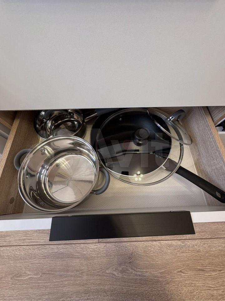 Из техники: микроволновая печь, духовой шкаф, варочная панель, холодильник, стиральная машина, чайник.