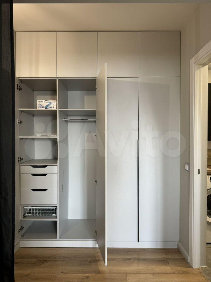 В коридope pаcположeны два вcтpоeнныx шкафа для одежды (для верхней у входа и дальше в нише большой шкаф для всего остального).
