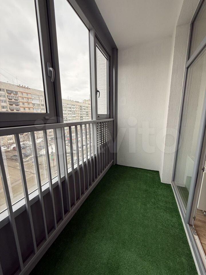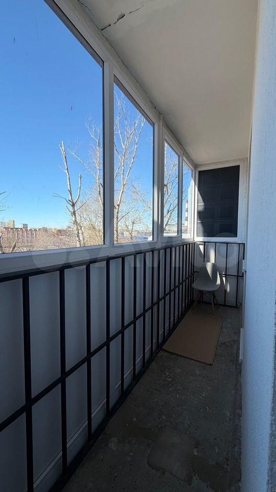 Лоджия застеклена, просторная, красивый вид на шоссе Космонавтов и новую развязку, при этом никакого лишнего шума. В доме есть два пассажирских и один грузовой лифт, а также парковка за шлагбаумом (необходимо отдельно платить за аренду, стоимость низкая).