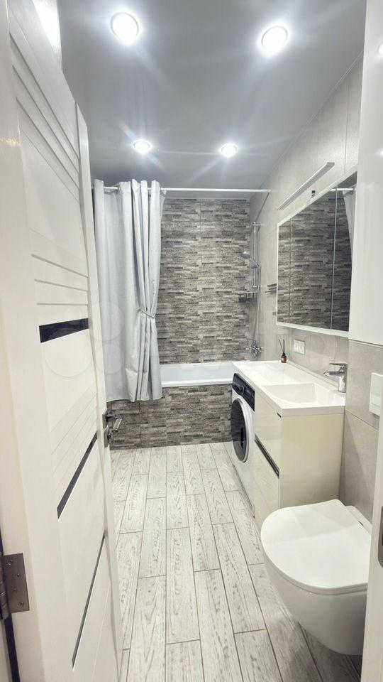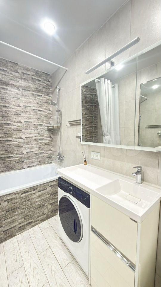 Кухня оборудована современной техникой, включая духовку и микроволновую печь, варочную панель, вытяжку . Санузел совмещенный, выполнен в стильном дизайне.