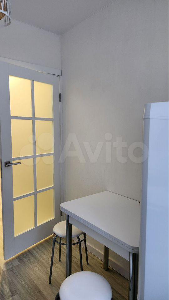 В квартире выполнен косметический ремонт. Просторная комната оборудована диваном и рабочим столом. Кухня светлая и функциональная, оснащена газовой плитой и холодильником. Санузел раздельный, что добавляет удобства.