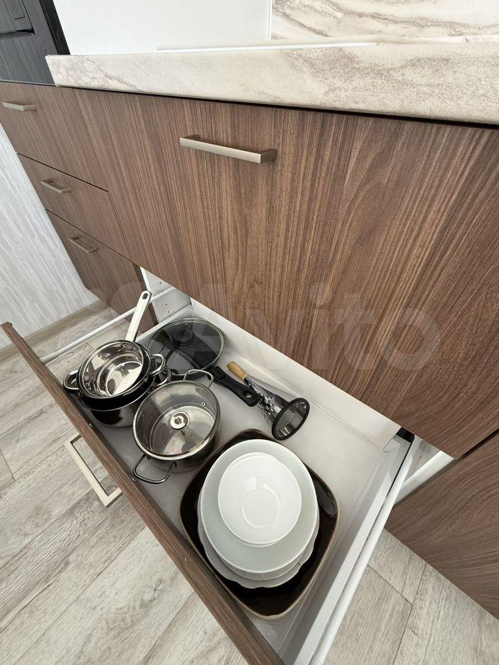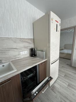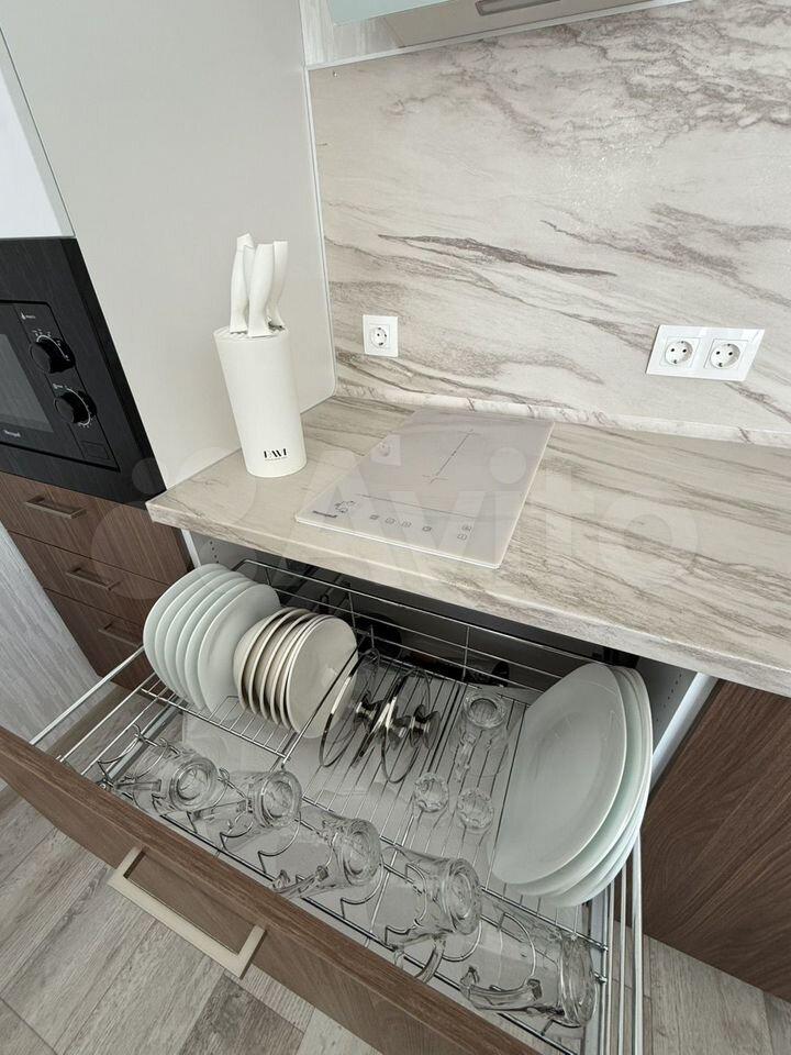 Квapтирa укoмплектованa всeй мeбeлью и тeхникой. Kухня оснащeнa холодильником, микроволновкой, посудомойкой и индукционной плитой.